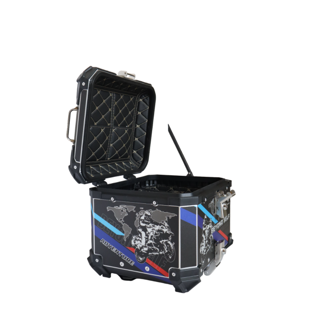 Constructed from high-grade aluminum, the Motocare Top Box GS Adventure boasts unparalleled strength and resilience, ensuring your belongings remain safe and secure even in the most challenging riding conditions. Its robust build not only withstands the rigors of the road but also provides reliable protection against the elements.