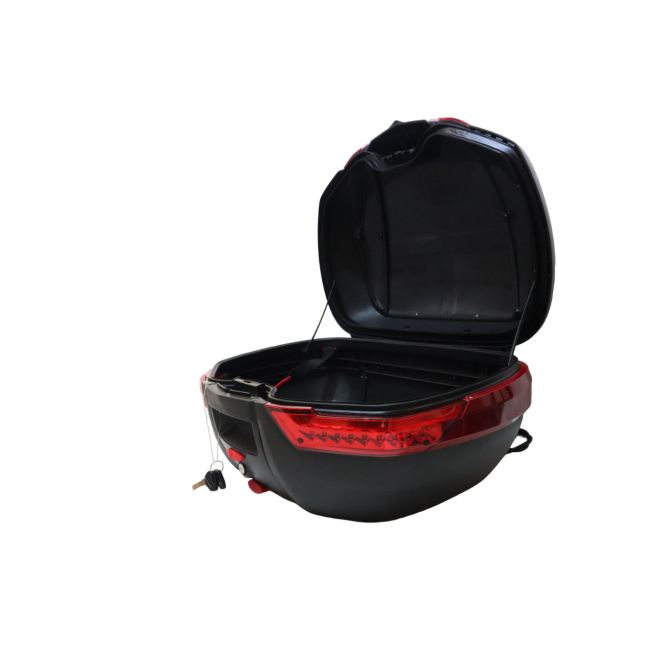 Equipped with LED lighting, this top box enhances both safety and visibility, especially during night rides or low-light conditions. The integrated LED lights not only illuminate the contents of the box but also enhance the visibility of your bike, ensuring you remain visible to other motorists on the road.